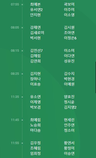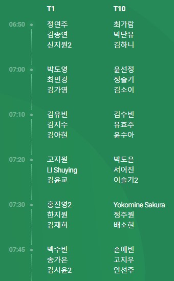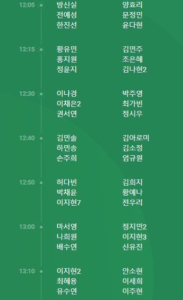 조편성표를 확인해 보니 김수지, 이예원, 박현경 선수가 8시 15분으로 같은 조편성에 잡혀있습니다. 누가 우승해도 이상하지 않은 조합이라 중계 방송볼 때 더 재밌을 거 같습니다.